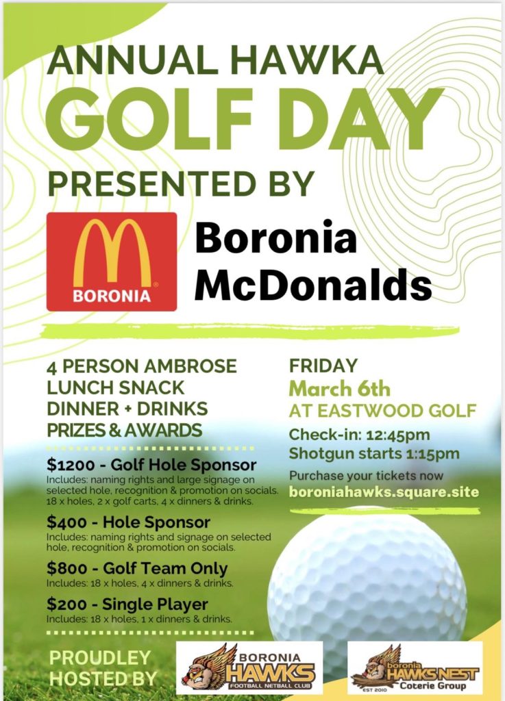The Annual Hawka Golf Day is on again! It’s a fabulous event and we encourage you all to get a team together or join in a team that we can assist with. Many thanks to Boronia McDonalds and Hawks Nest Coterie Group for putting on this fabulous event.