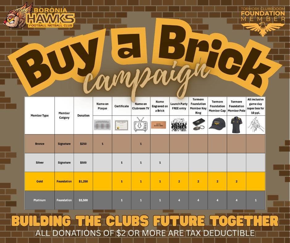 Our Foundation Brick Wall Fundraiser will help raise funds to further enhance the facilities at Tormore Reserve and deliver the finishing touches that will truly bring the project to life.