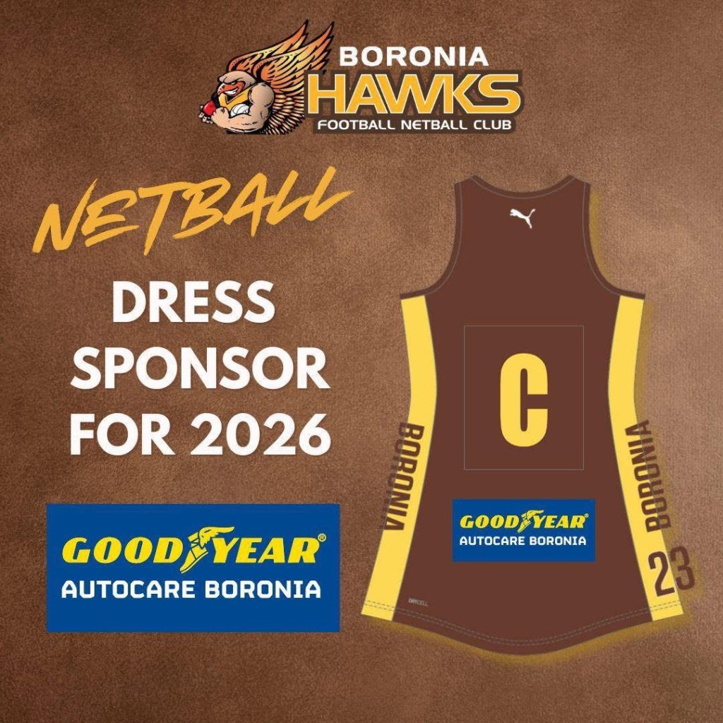 We’re thrilled to welcome Goodyear Autocare Boronia as the official Netball Dress Sponsor for the Boronia Hawks Football Netball Club in 2026!
