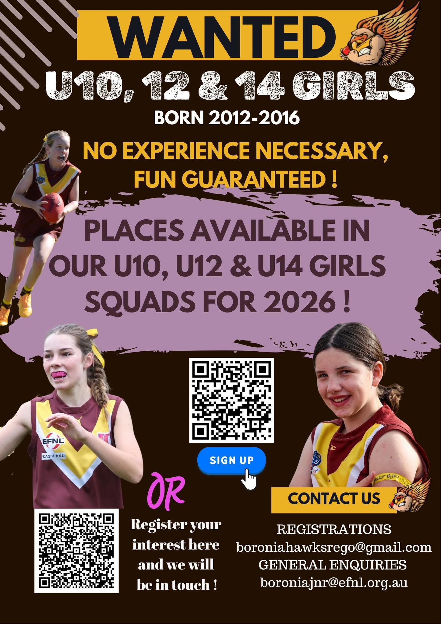 Register here 2026 REGISTRATIONS or for more info or questions email boroniajnr@efnl.org.au