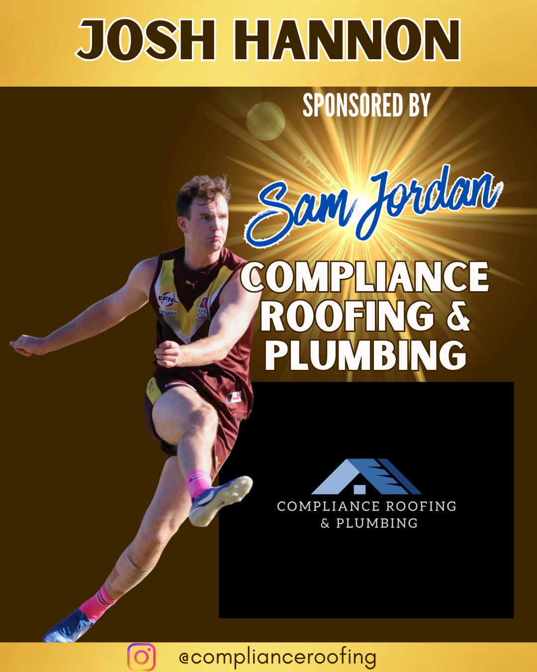 We are excited to welcome Sam Jordan and the team at Compliance Roofing & Plumbing as a new Player Sponsor for the big man himself, Josh Hannon!