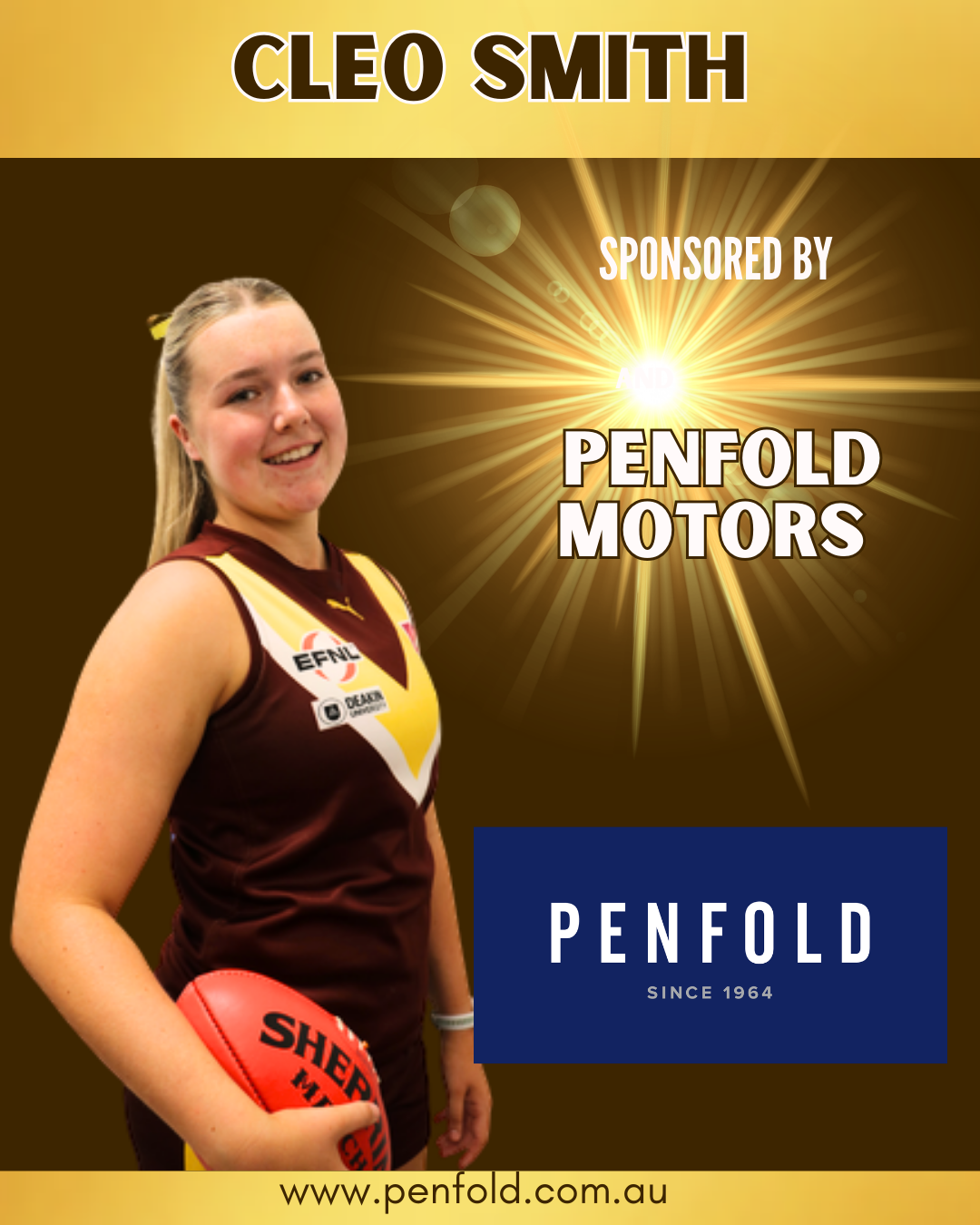 A former Eastern Ranges player and TOY selection, Cleo has become a powerhouse in our ruck division, and we are stoked to have such a prestigious local group backing her as she dominates the air this year! Penfold Motors Burwood is a staple of the Burwood Highway automotive landscape. With over six decades of experience, they represent some of the world’s most iconic brands and offer specialized showrooms and service centers.