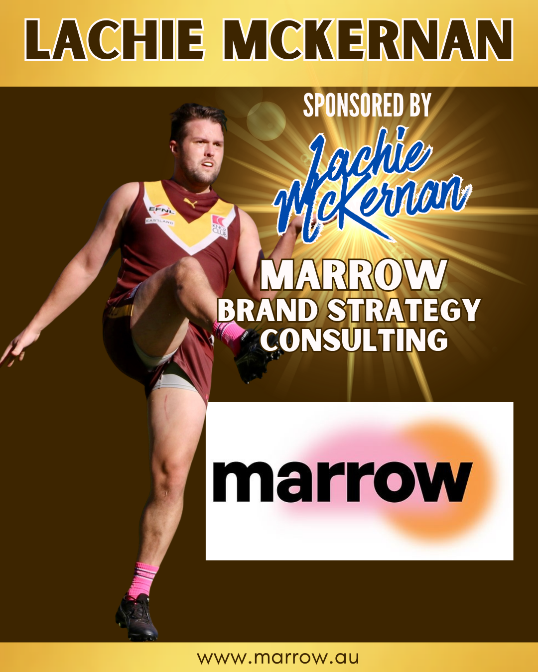 We are incredibly proud to announce that our 2018 Premiership skipper and 5-time Senior Captain, Lachie McKernan, is back as a Silver Sponsor for the 2026 season! This year, Lachie and Marrow Brand Strategy Consulting are throwing their support behind two big names: our star recruit Jake Arundell and the man himself, Lachie McKernan.